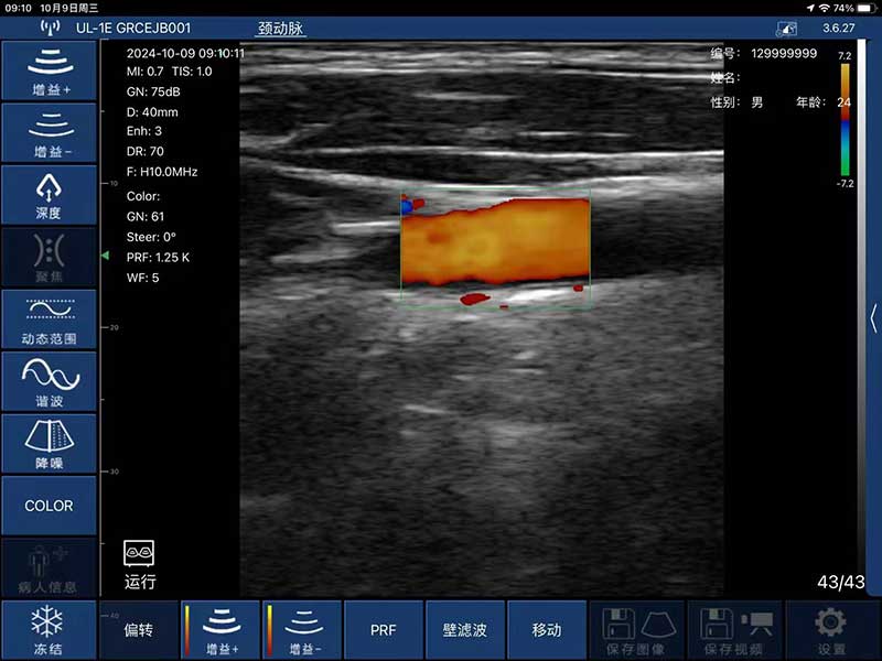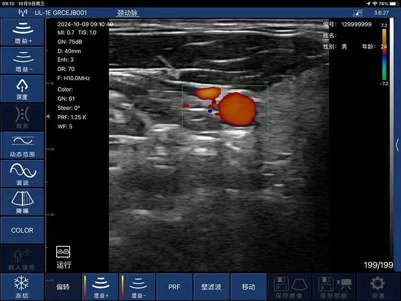 - Image Adjust: BGain, TGC, DYN, Focus, Depth, Harmonic, Denoise, Color Gain,