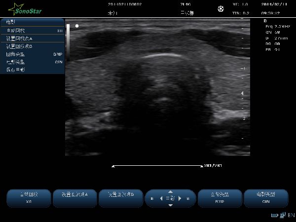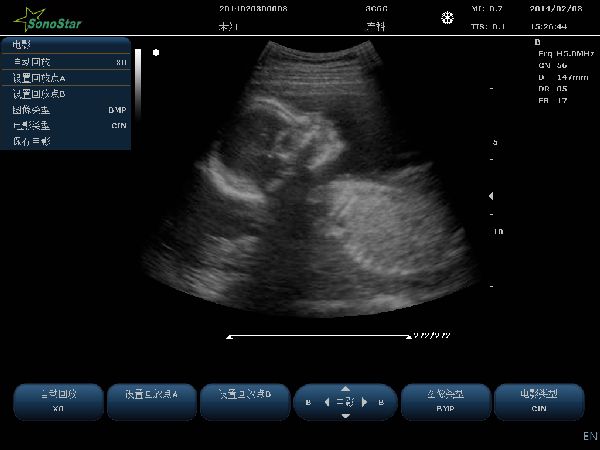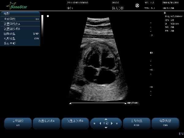 Pre-processing:8-segment TGC adjustment, Dynamic range (0-100), Frame correlation (0-7), Edge enhancement (0-7), Line density (High/Mid/Low)