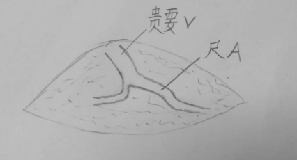 本人内瘘小白,今年刚开始做内瘘,从一月到现在总计内瘘不足20例,这是第一个尺动脉内瘘,希望不要见笑