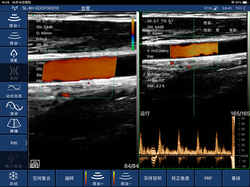 • 穿刺辅助功能:平面内穿刺引导线功能,平面外穿刺引导与血管自动测量功能