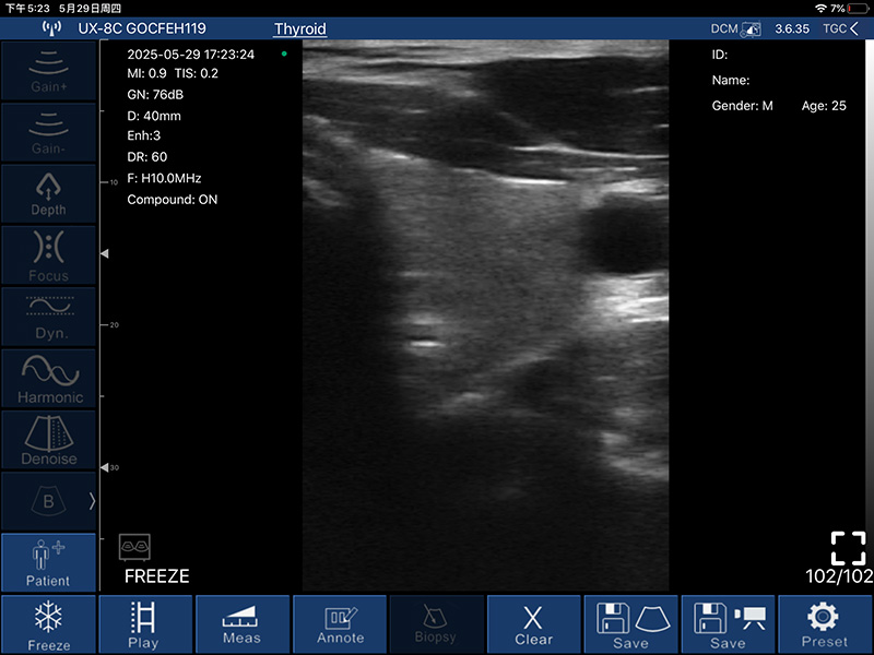- 应用:腹部/ 妇科/ 产科/ 心脏/ 泌尿系统/ 肾脏/ 肺/甲状腺/小器官/儿科/血管/ 颈动脉/乳腺/肌骨/神经/美学