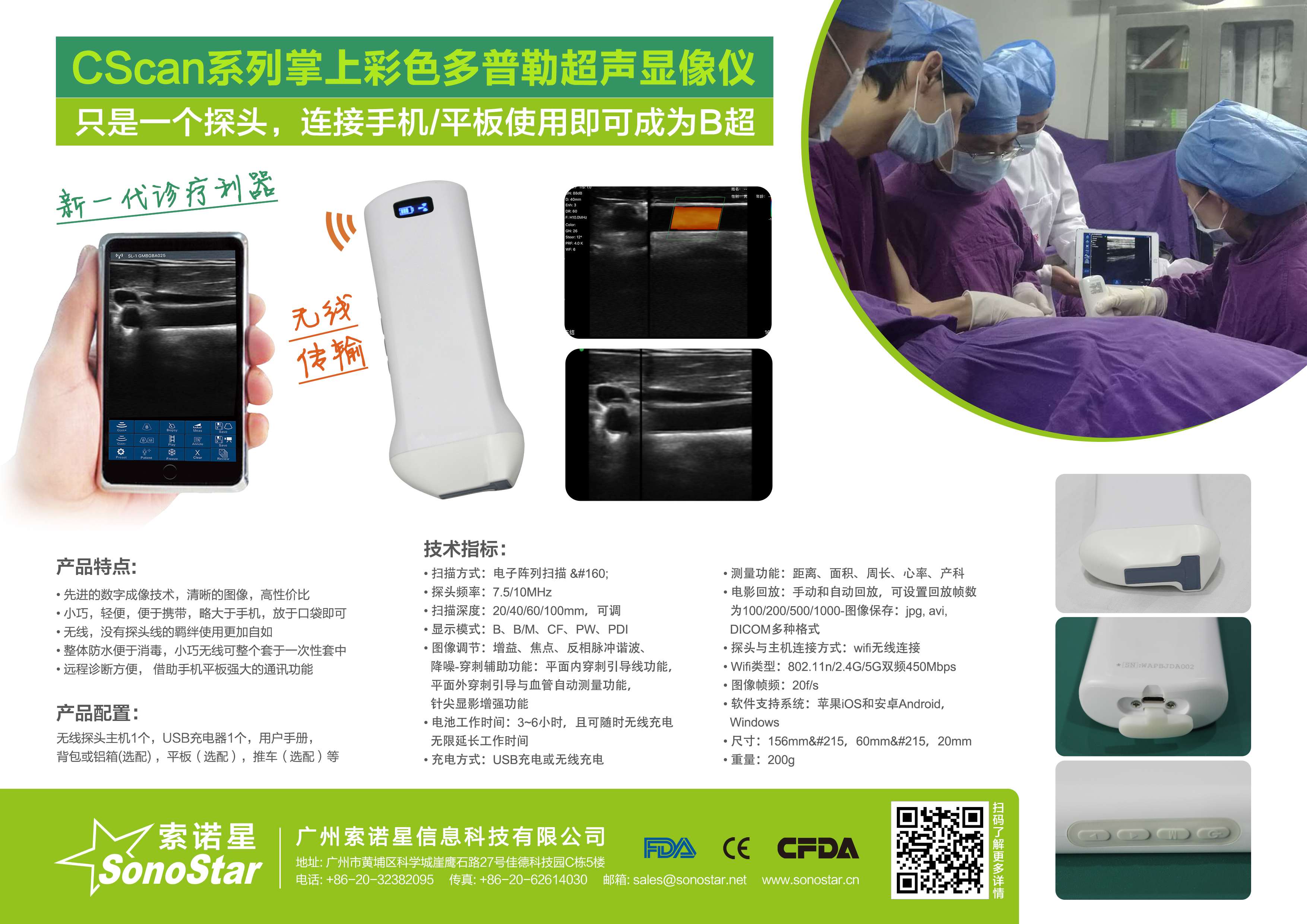 • 探头与主机连接方式:wifi无线连接