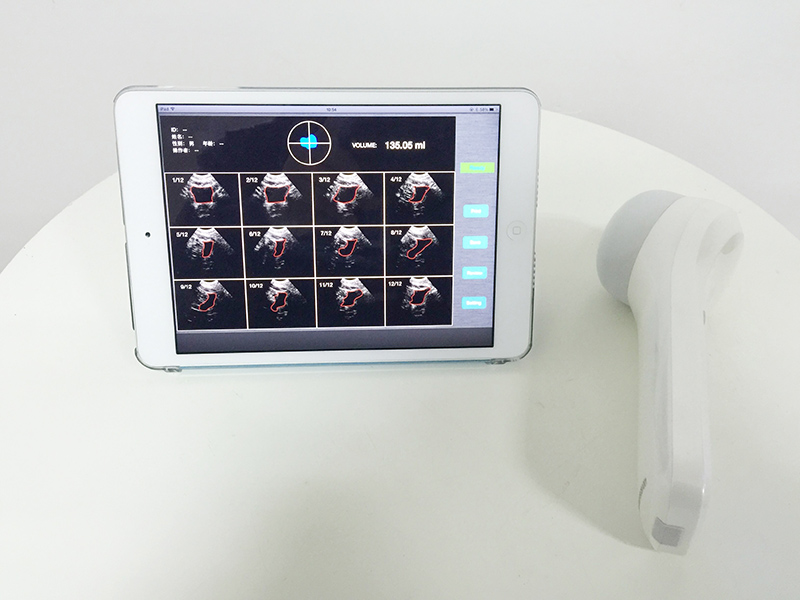 本产品主要用于测量尿失禁患者的膀胱内尿残余量,以便判断是否为患者导尿,以及导多少容量的尿合适防止过量导尿导致不适,同时也为导尿过程提供可视化监测防止导尿管盲插刺伤患者膀胱。