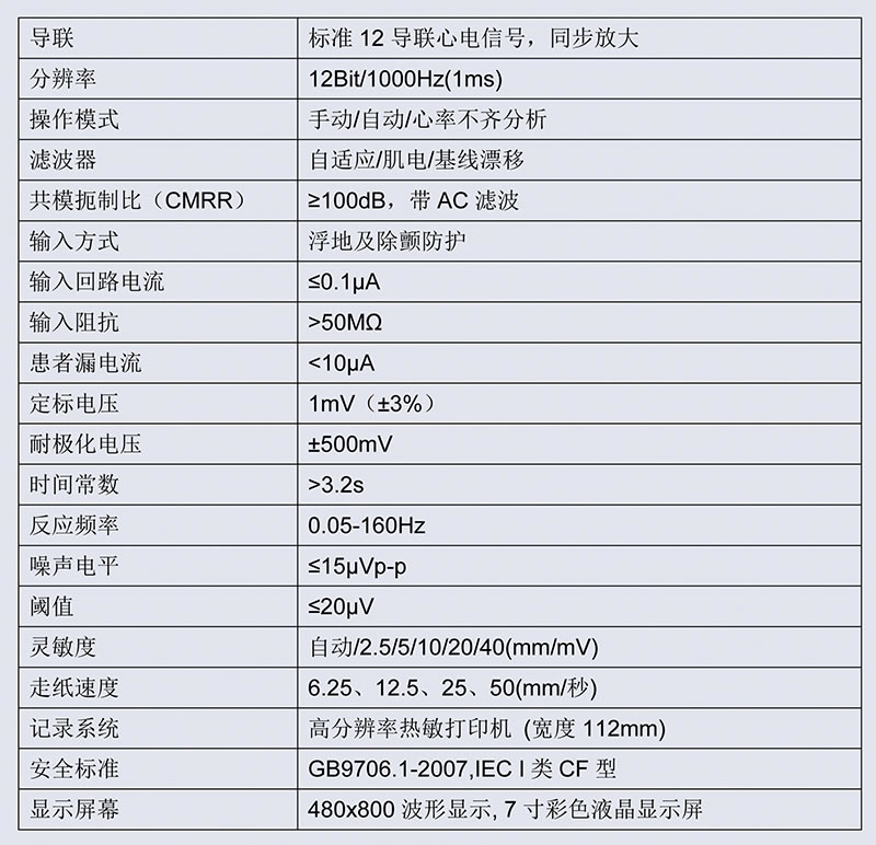 -记录纸宽112mm,可记录清晰准确的六道不压缩心电波形及导联标记、灵敏度、走纸速度、滤波器状态等信息