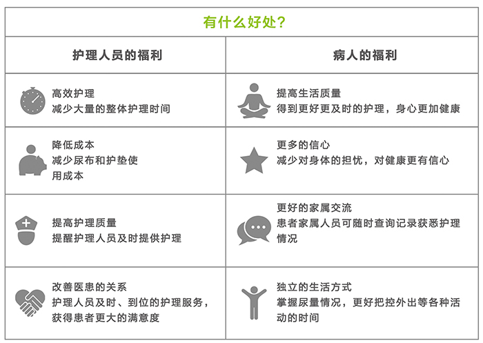 B1尿量监测器能实现尿量的实时自动监测,让尿失禁(尿满了会失控自动排出)的患者在尿快满时得到提醒而提前排尿避免尿湿裤子,让丧失尿胀感机能(尿满也没知觉)的患者在尿满时得到提醒而及时进行排尿避免撑坏膀胱,很多老年人和重症、术后、麻醉后病人均有需求。而对于医护人员,则再也不需要频繁地手动检测患者的尿量了,护理多个患者的时候也不需来回巡查而可通过手机连接工作站同时接收多个患者的尿满报警即可,大大减少了护理的工作量。