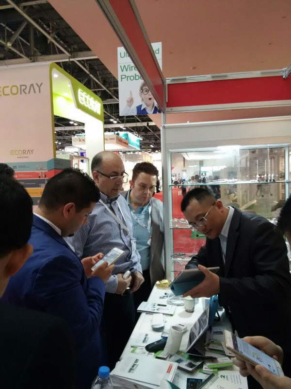 此次展会我司展位在主展馆,与GE、飞利浦、西门子等公司同一个展馆,我司的无线探头、笔记本B超彩超等产品吸引了众多客户,成为展会的热点之一。
