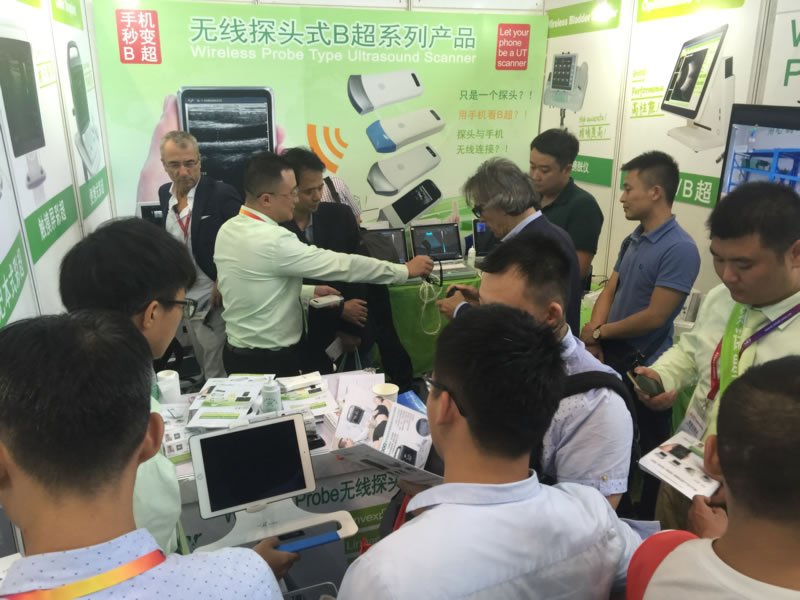 新版本高清晰无线探头赢得了客户的广泛赞叹,配无线探头的视频眼镜也吸引住了很多客户纷纷测试体验,还有4D扫描无线探头式膀胱仪、超声心电电脑一体机、高清晰图像高性价比的笔记本彩超,以及外观精美、性能优异的推车彩超、触摸屏一体机眼超等也给客户留下了深刻的印象。