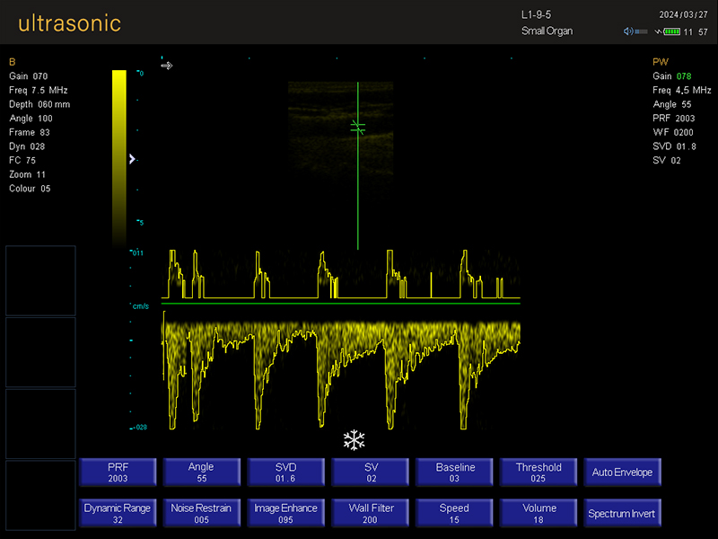 • Image adjustment: up and down, left and right, brightness, focus position, dynamic range, scanning angle, frame correlation, M speed