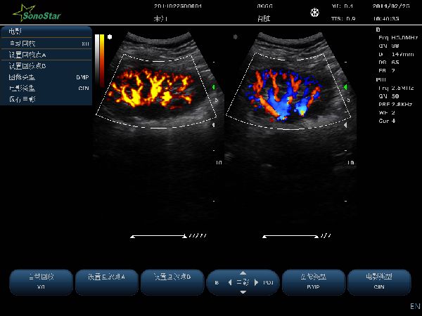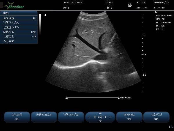 Pre-processing:8-segment TGC adjustment, Dynamic range (0-100), Frame correlation (0-7), Edge enhancement (0-7), Line density (High/Mid/Low)