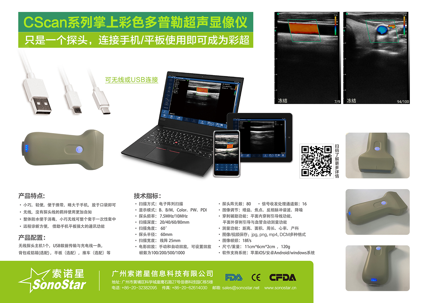 - 穿刺辅助功能:平面内穿刺引导线功能,平面外穿刺引导与血管自动测量功能