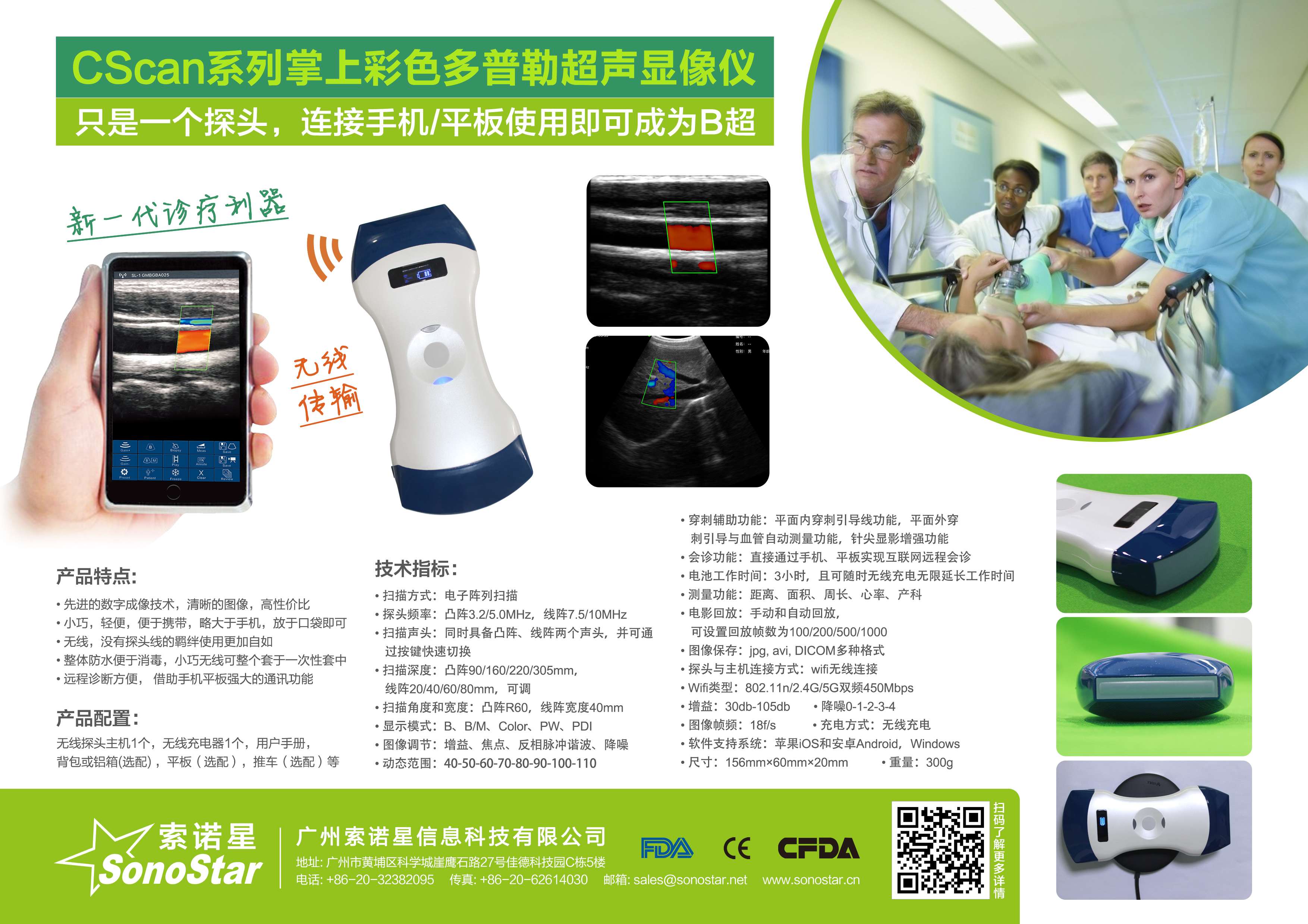 • 探头与主机连接方式:wifi无线连接