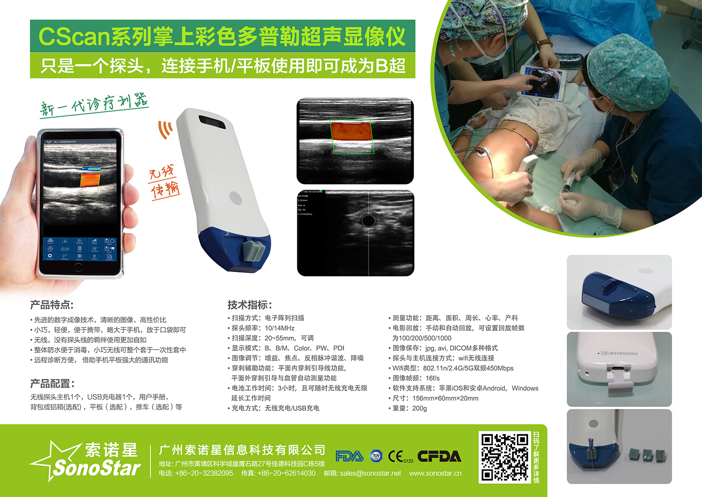 • 穿刺辅助功能:平面内穿刺引导线功能,平面外穿刺引导与血管自动测量功能