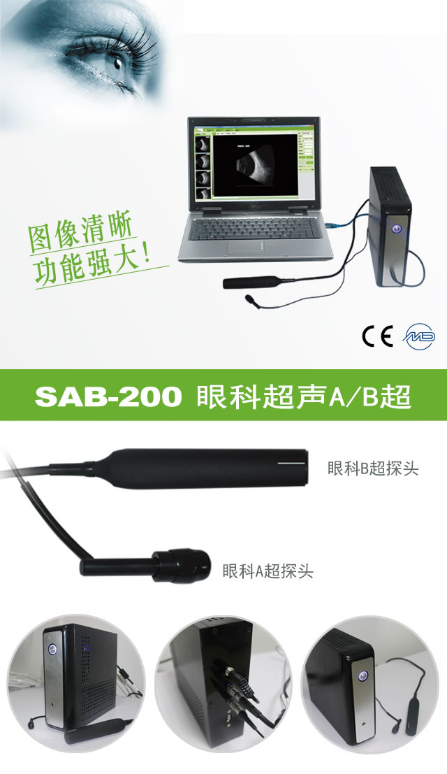 SAB-200眼科A/B超声盒彩页: http://www.sonostar.net/download/SAB-200Catalog.pdf