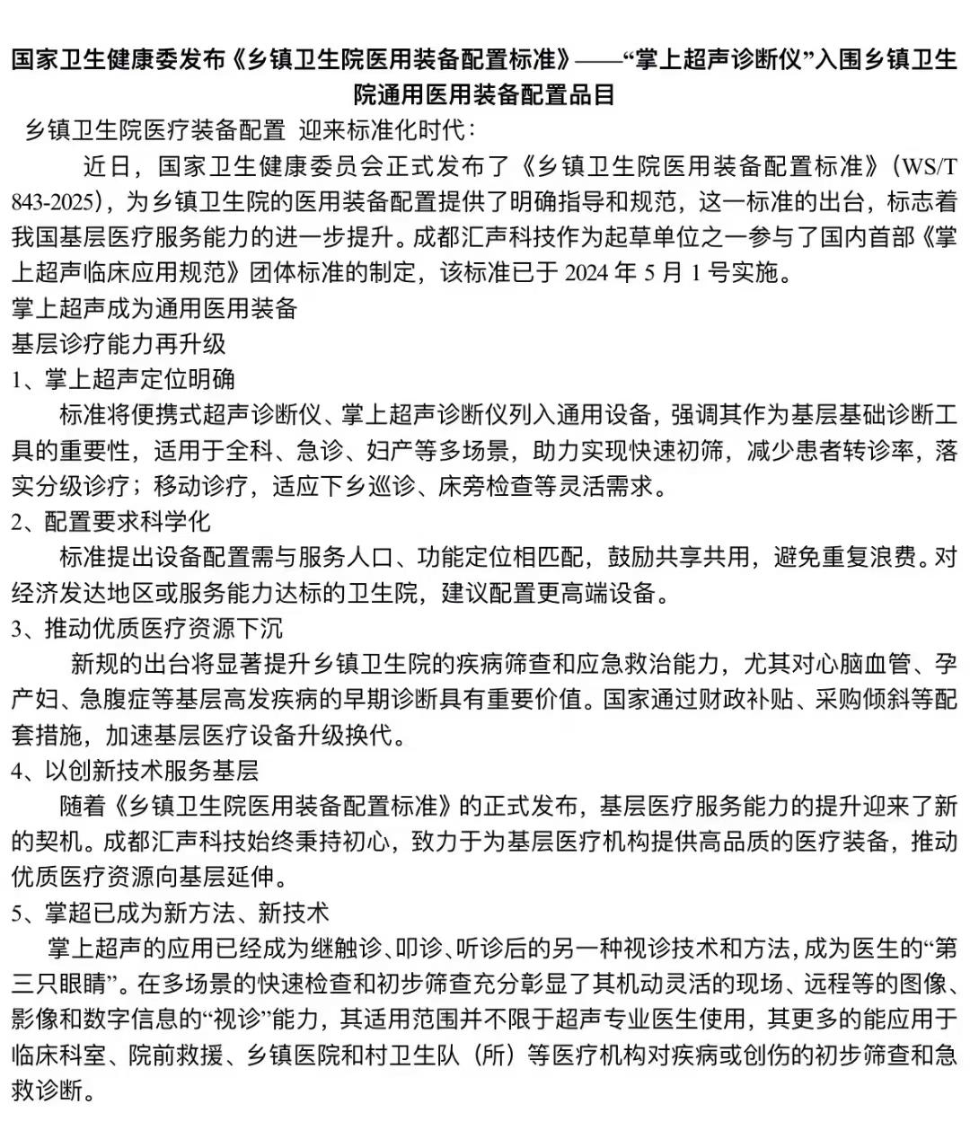 Mobile color ultrasound has been included in the newly issued "Medical Equipment Configuration